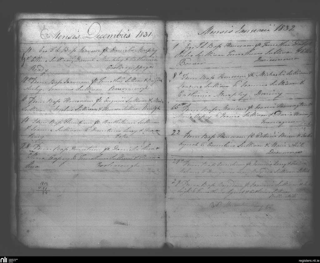 Adrigole; County of Cork; Diocese of Kerry. Baptisms, Dec. 1831 to Jan. 1832