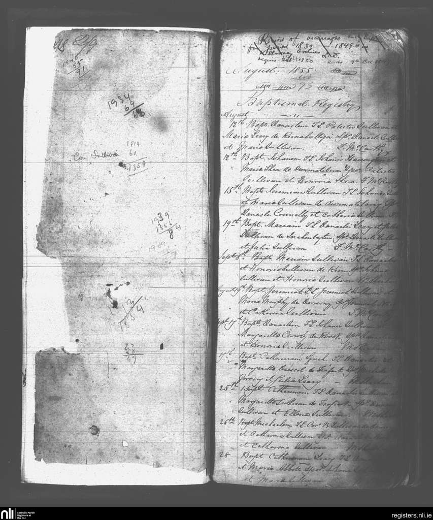 Adrigole; County of Cork; Diocese of Kerry. Baptisms, Aug. 1855 to Sep. 1855