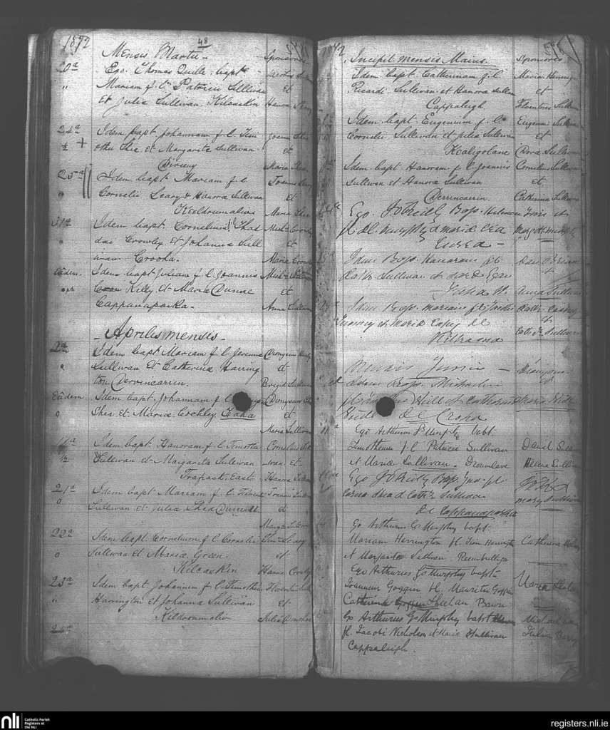 Adrigole; County of Cork; Diocese of Kerry. Baptisms, Mar. 1872 to June 1872
