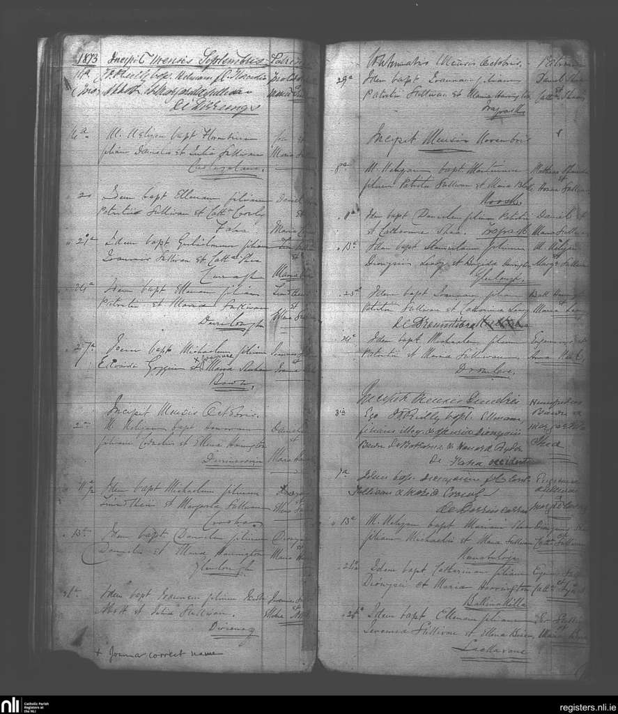 Adrigole; County of Cork; Diocese of Kerry. Baptisms, Sep. 1873 to Dec. 1873