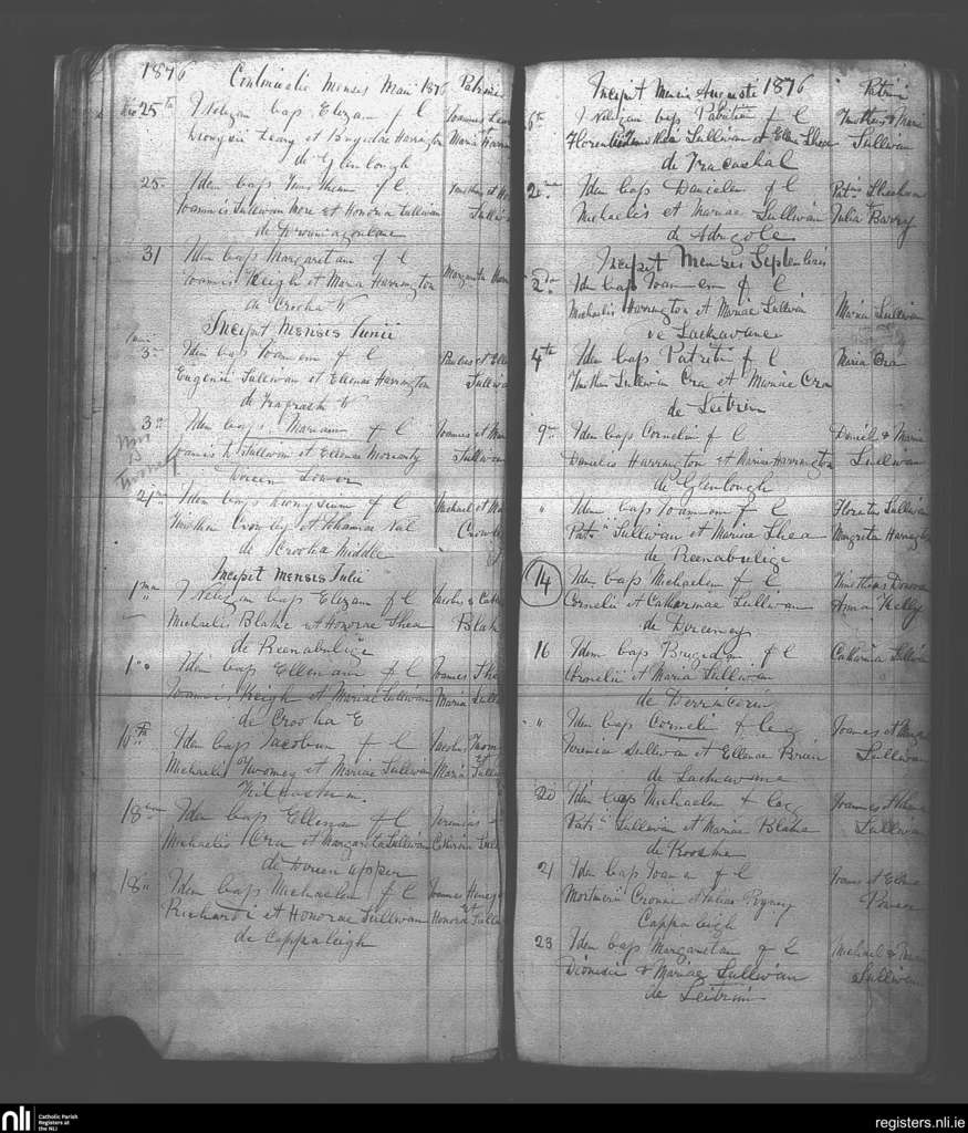 Adrigole; County of Cork; Diocese of Kerry. Baptisms, May 1876 to Sep. 1876