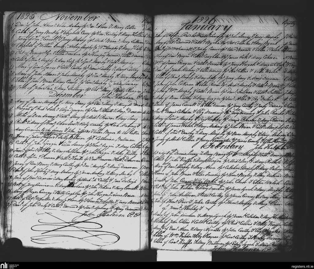 Ballinhassig; County of Cork; Diocese of Cork and Ross. Baptisms, Nov. 1825 to Feb. 1826