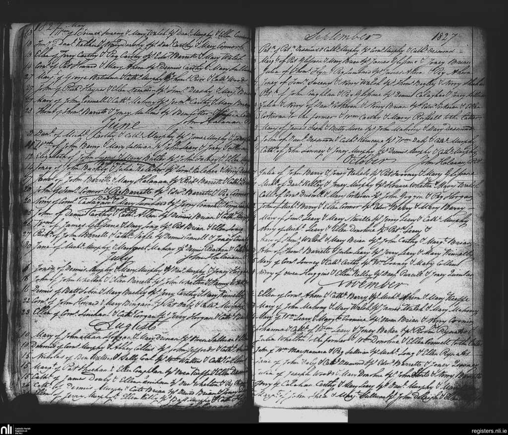 Ballinhassig; County of Cork; Diocese of Cork and Ross. Baptisms, May 1827 to Nov. 1827