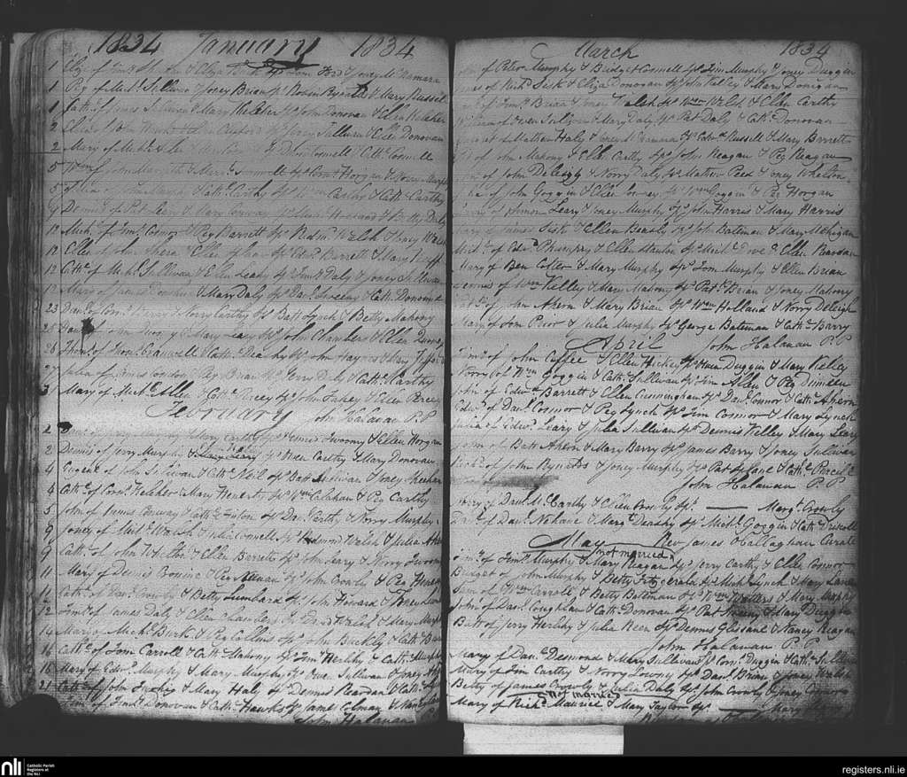 Ballinhassig; County of Cork; Diocese of Cork and Ross. Baptisms, Jan. 1834 to May 1834