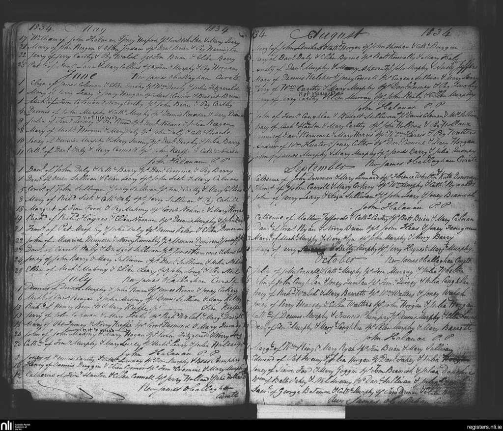 Ballinhassig; County of Cork; Diocese of Cork and Ross. Baptisms, May 1834 to Oct. 1834