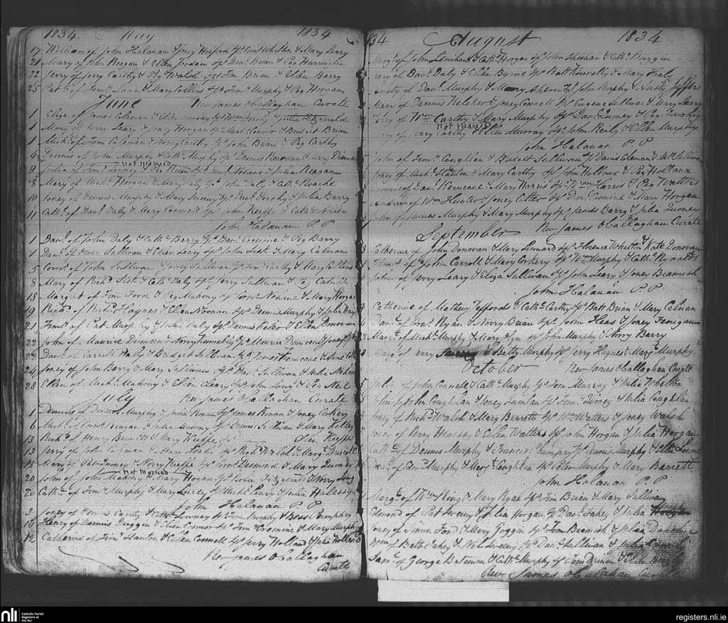 Ballinhassig; County of Cork; Diocese of Cork and Ross. Baptisms, May 1834 to Oct. 1834