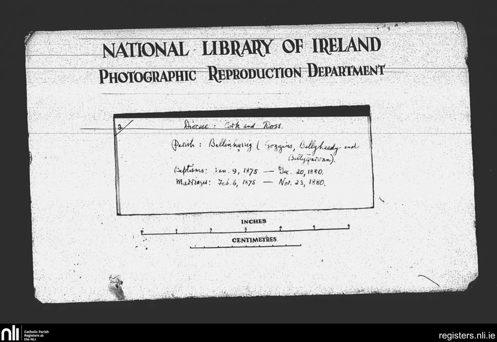 Ballinhassig; County of Cork; Diocese of Cork and Ross. Baptisms, Marriages