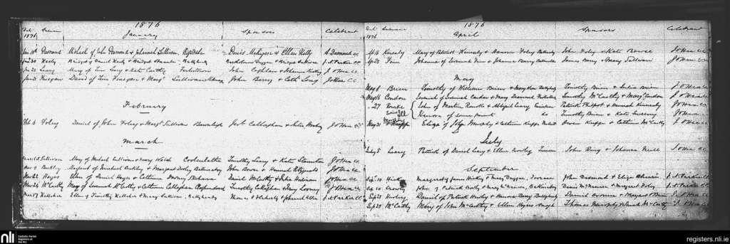Ballinhassig; County of Cork; Diocese of Cork and Ross. Baptisms, Jan. 1876 to Sep. 1876