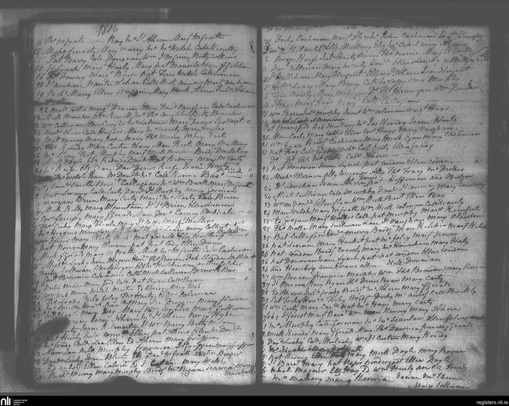 Youghal; County of Cork; Diocese of Cloyne. Baptisms, Nov. 1806 to Feb. 1807