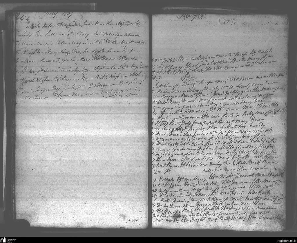 Youghal; County of Cork; Diocese of Cloyne. Baptisms, July 1807 to Sep. 1807