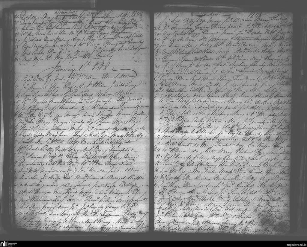 Youghal; County of Cork; Diocese of Cloyne. Baptisms, Dec. 1807 to Feb. 1808