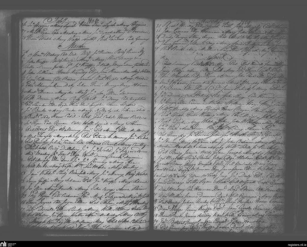 Youghal; County of Cork; Diocese of Cloyne. Baptisms, Feb. 1809 to Apr. 1809