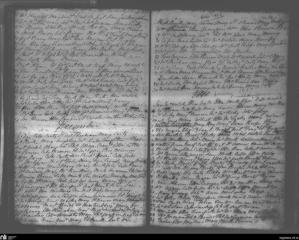 Youghal; County of Cork; Diocese of Cloyne. Baptisms, Nov. 1809 to Jan. 1810