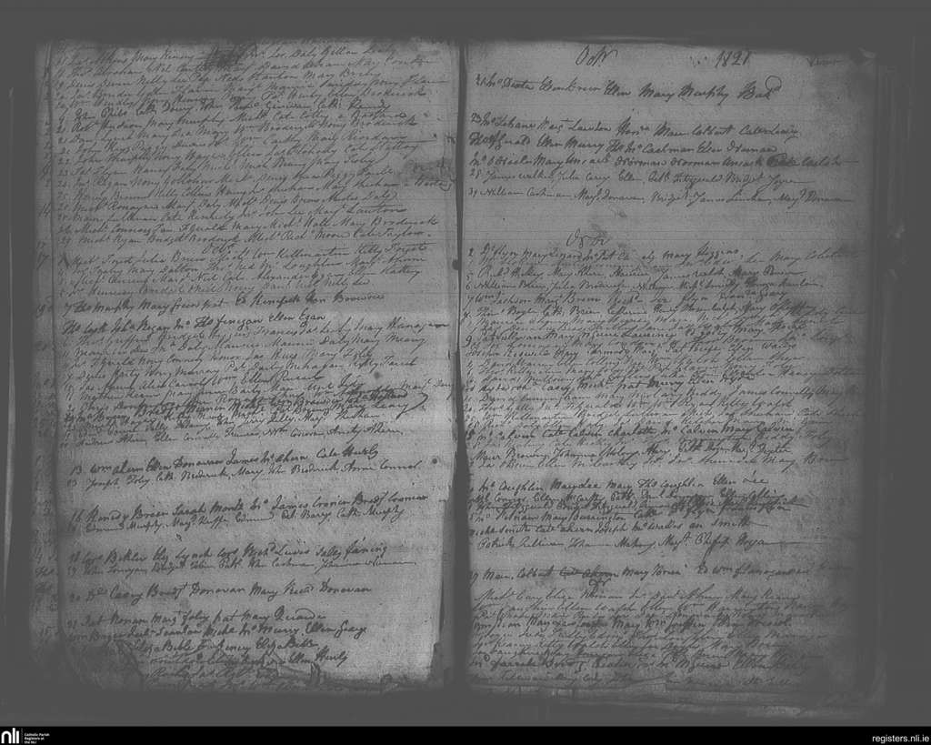 Youghal; County of Cork; Diocese of Cloyne. Baptisms, Sep. 1821 to Dec. 1821