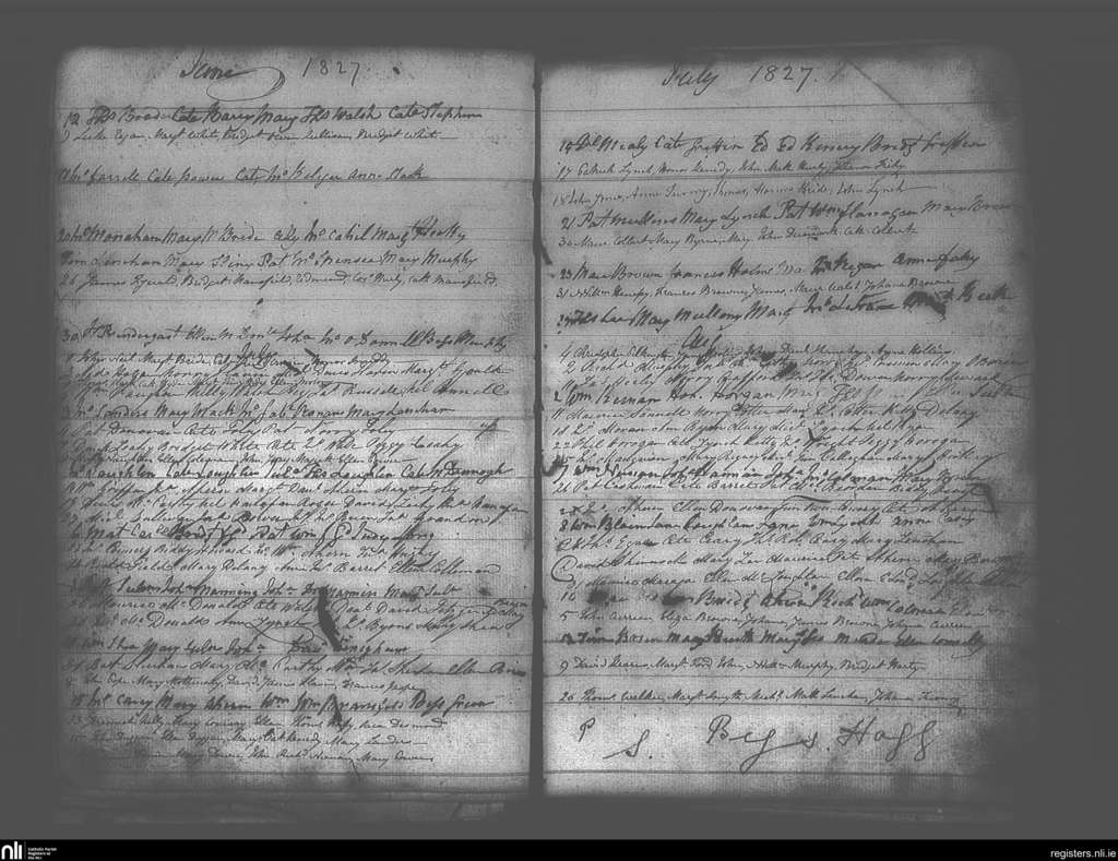 Youghal; County of Cork; Diocese of Cloyne. Baptisms, June 1827 to Aug. 1827