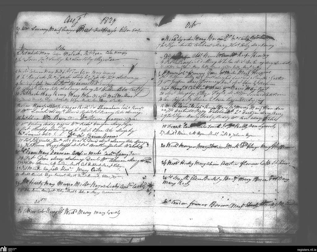 Youghal; County of Cork; Diocese of Cloyne. Baptisms, Aug. 1827 to Oct. 1827