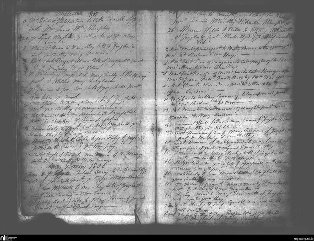 Youghal; County of Cork; Diocese of Cloyne. Marriages, Sep. 1805 to Apr. 1806