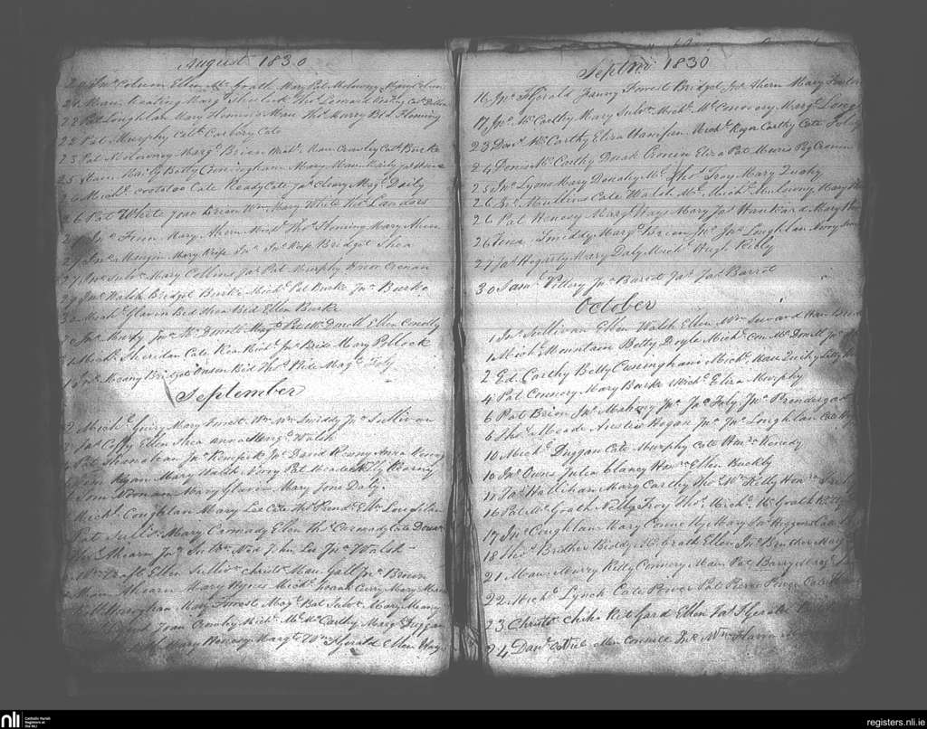 Youghal; County of Cork; Diocese of Cloyne. Baptisms, Aug. 1830 to Oct. 1830