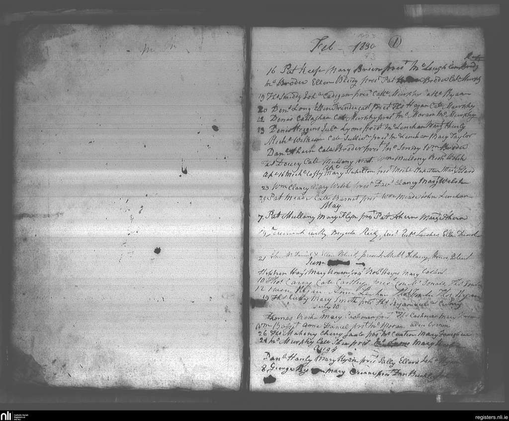 Youghal; County of Cork; Diocese of Cloyne. Marriages, Feb. 1830 to Aug. 1830