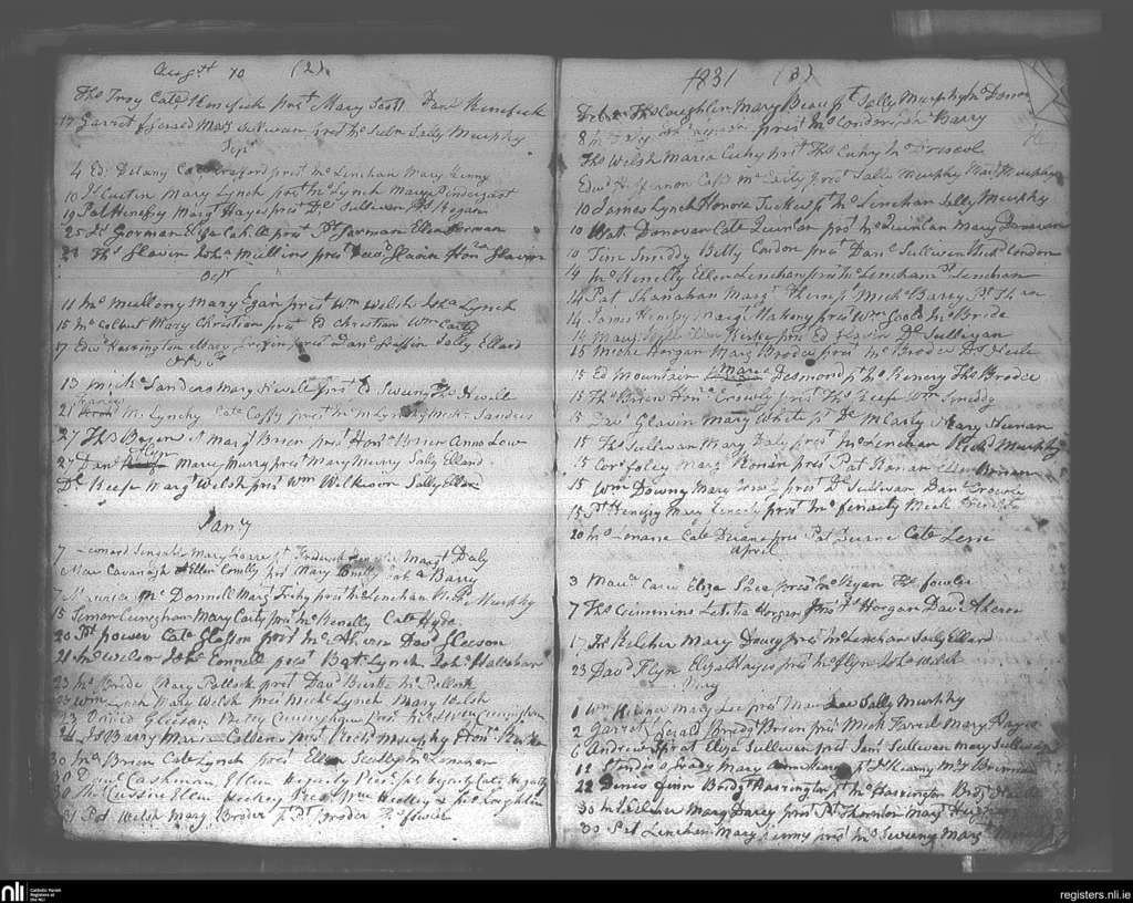 Youghal; County of Cork; Diocese of Cloyne. Marriages, Aug. 1830 to May 1831