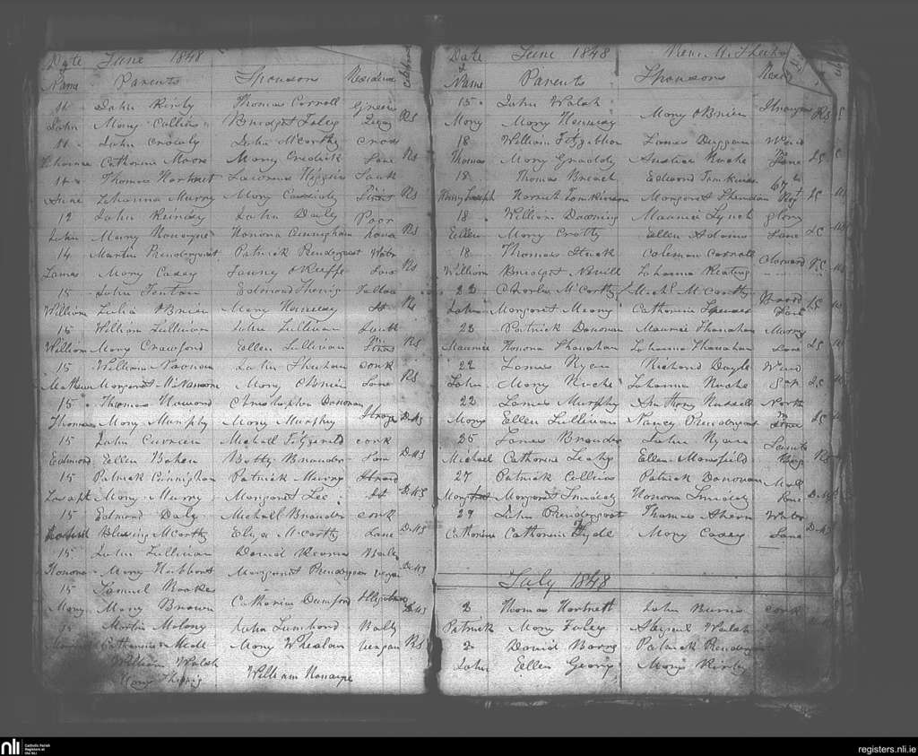 Youghal; County of Cork; Diocese of Cloyne. Baptisms, June 1848 to July 1848