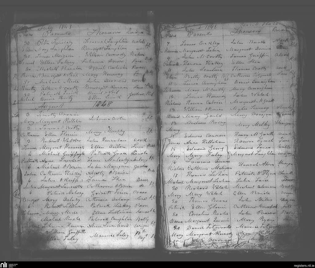 Youghal; County of Cork; Diocese of Cloyne. Baptisms, July 1848 to Aug. 1848