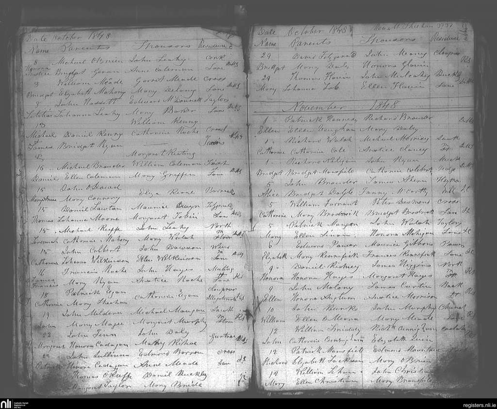 Youghal; County of Cork; Diocese of Cloyne. Baptisms, Oct. 1848 to Nov. 1848