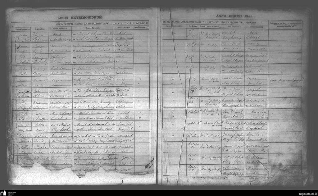 Youghal; County of Cork; Diocese of Cloyne. Marriages, June 1866 to Oct. 1866