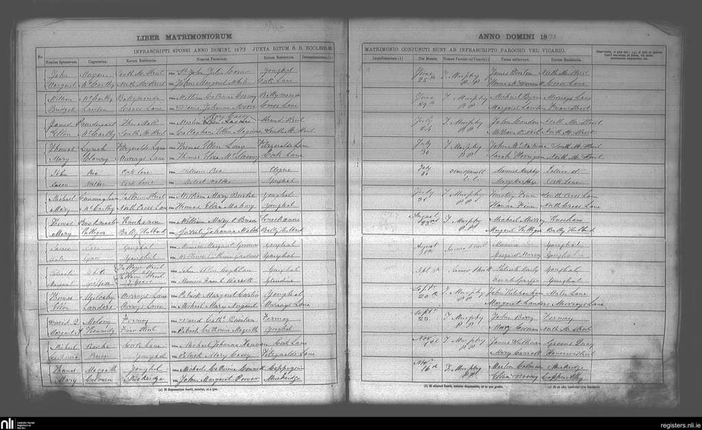 Youghal; County of Cork; Diocese of Cloyne. Marriages, June 1873 to Nov. 1873