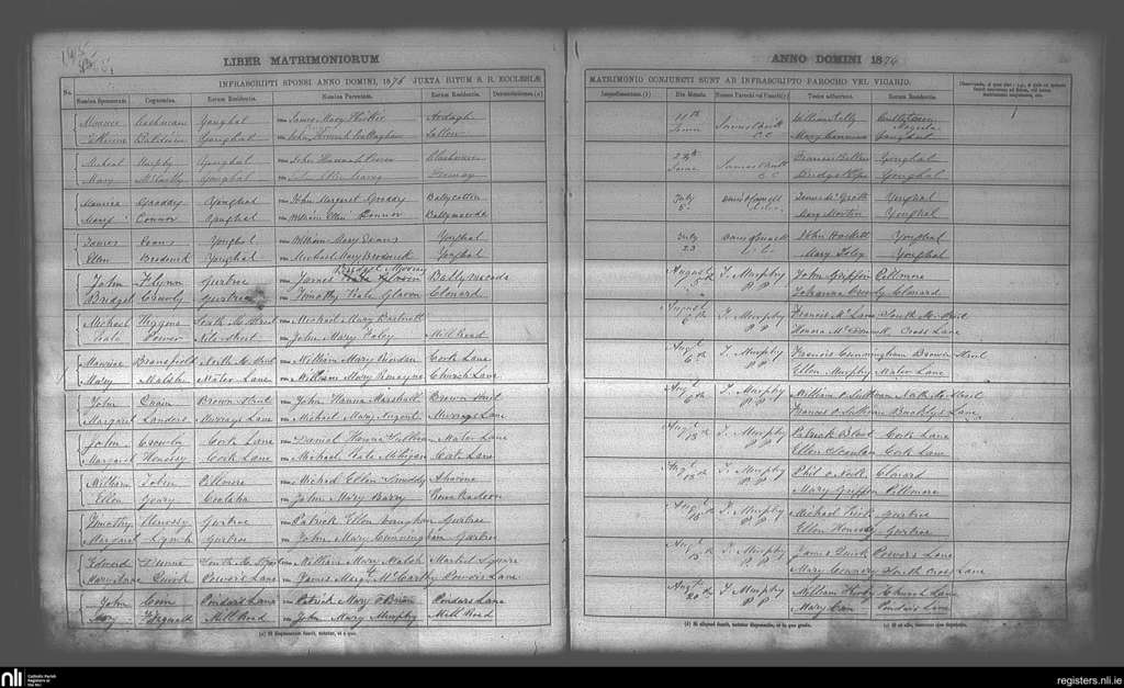 Youghal; County of Cork; Diocese of Cloyne. Marriages, June 1876 to Aug. 1876
