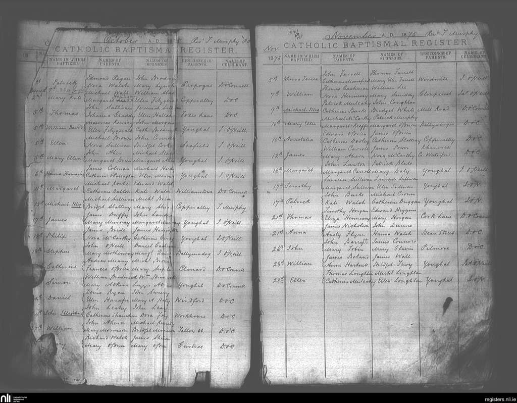 Youghal; County of Cork; Diocese of Cloyne. Baptisms, Oct. 1875 to Nov. 1875