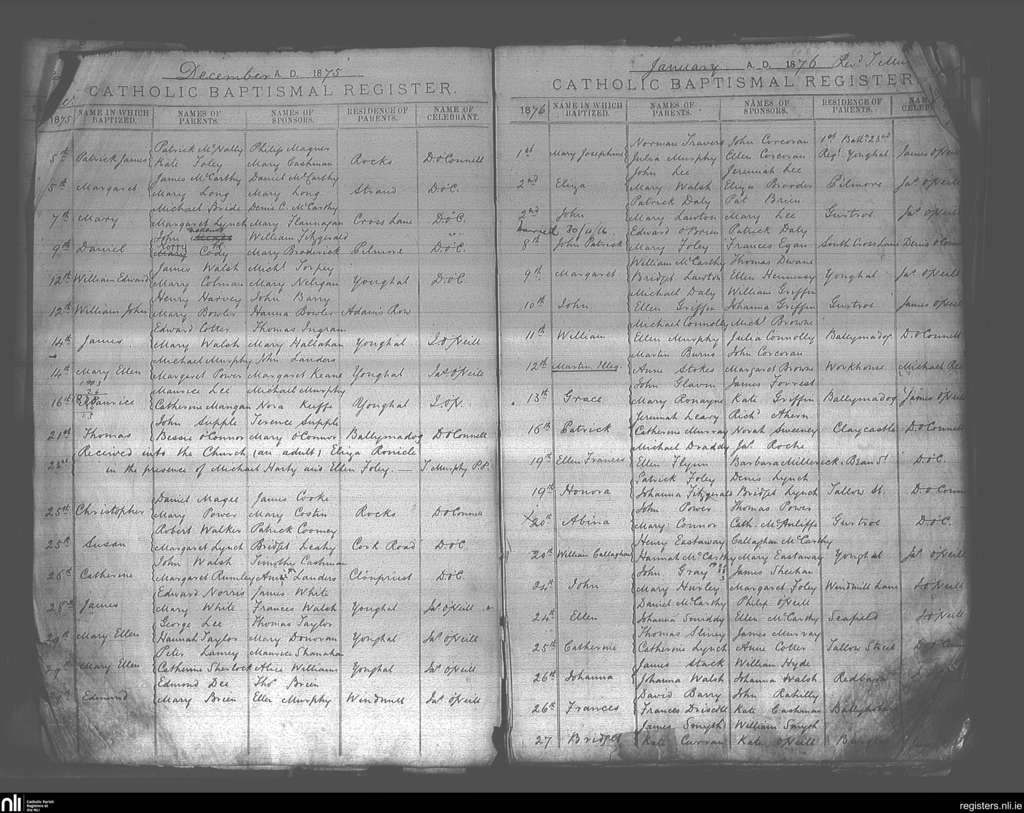Youghal; County of Cork; Diocese of Cloyne. Baptisms, Dec. 1875 to Jan. 1876