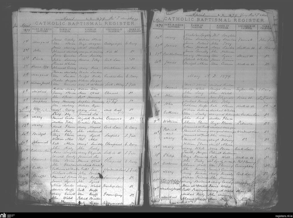 Youghal; County of Cork; Diocese of Cloyne. Baptisms, Apr. 1879 to May 1879
