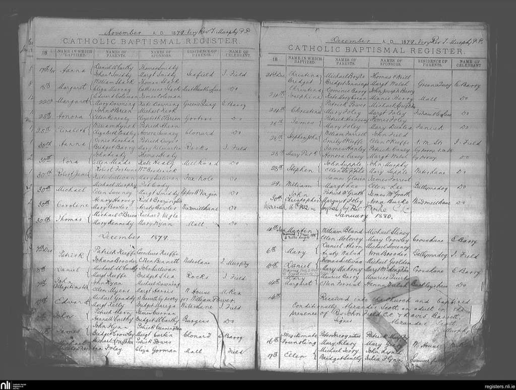 Youghal; County of Cork; Diocese of Cloyne. Baptisms, Nov. 1879 to Jan. 1880