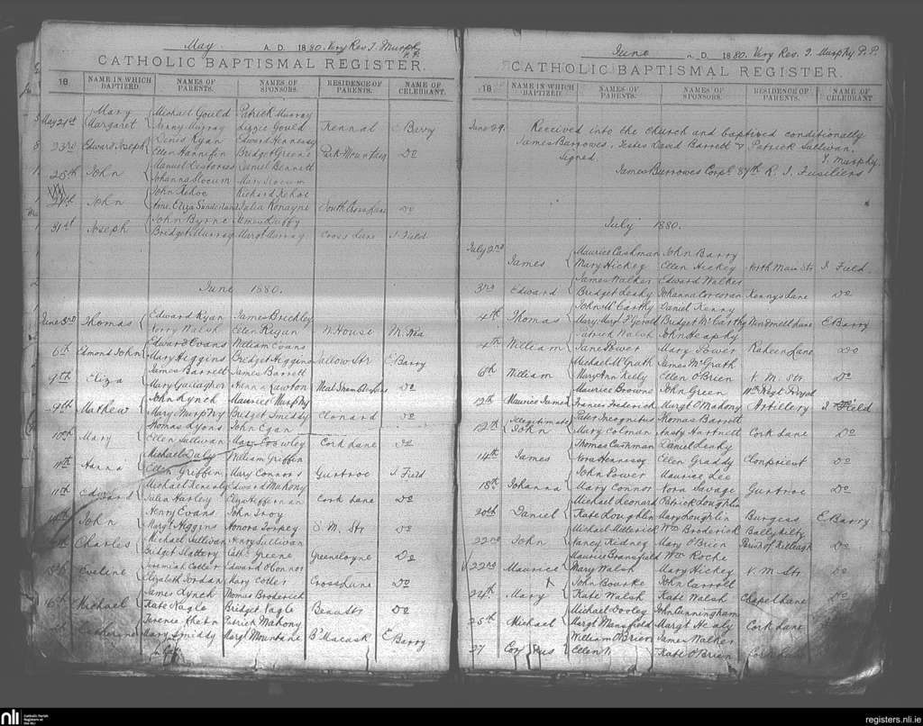 Youghal; County of Cork; Diocese of Cloyne. Baptisms, May 1880 to July 1880