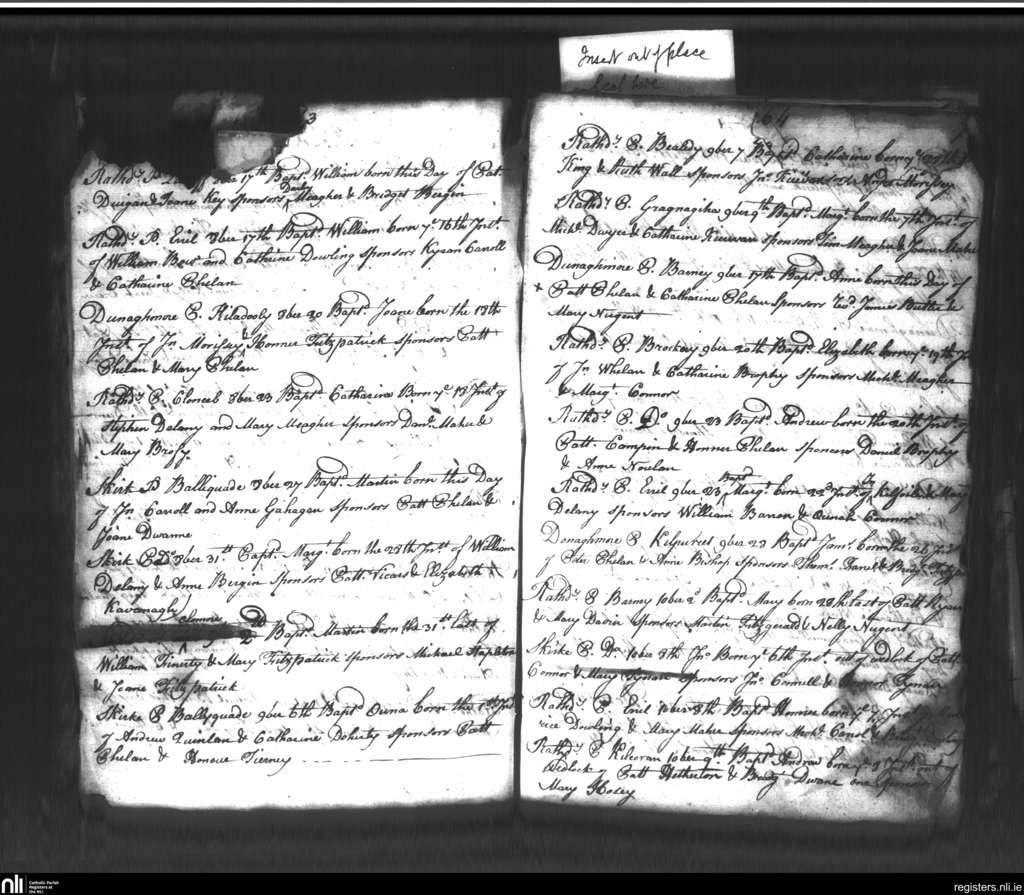 Rathdowney; County of Laois; Diocese of Ossory. Baptisms, Oct. 1763 to Dec. 1763