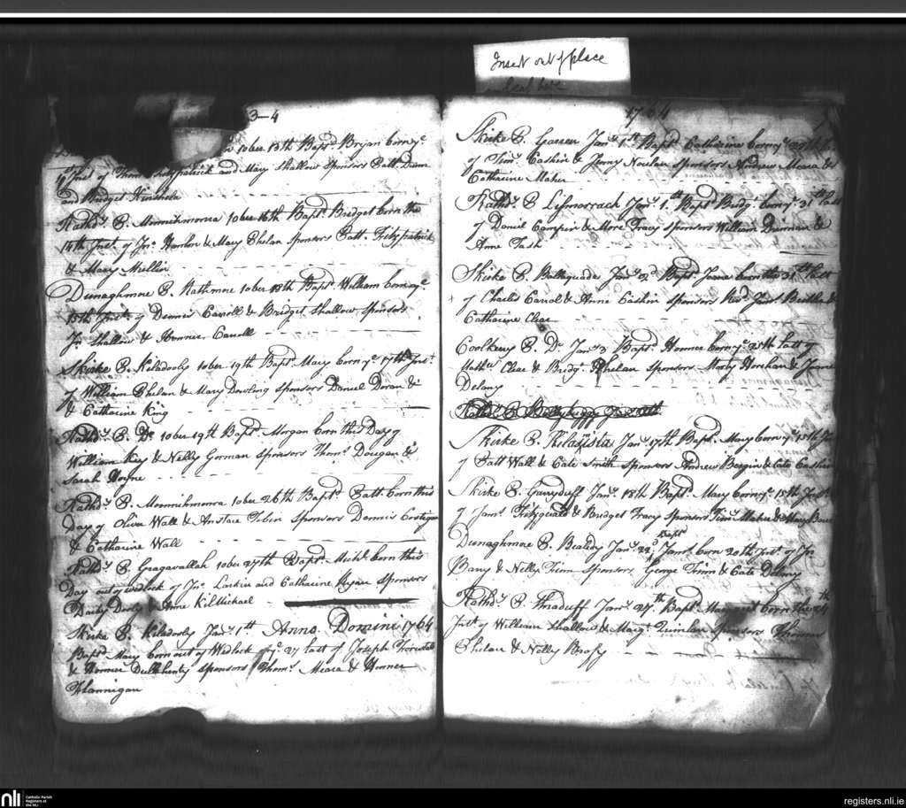 Rathdowney; County of Laois; Diocese of Ossory. Baptisms, Dec. 1763 to Jan. 1764