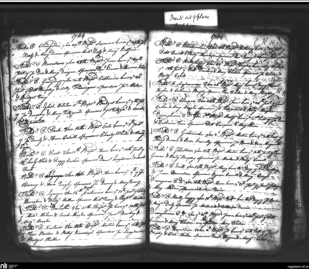Rathdowney; County of Laois; Diocese of Ossory. Baptisms, Sep. 1764 to Dec. 1764