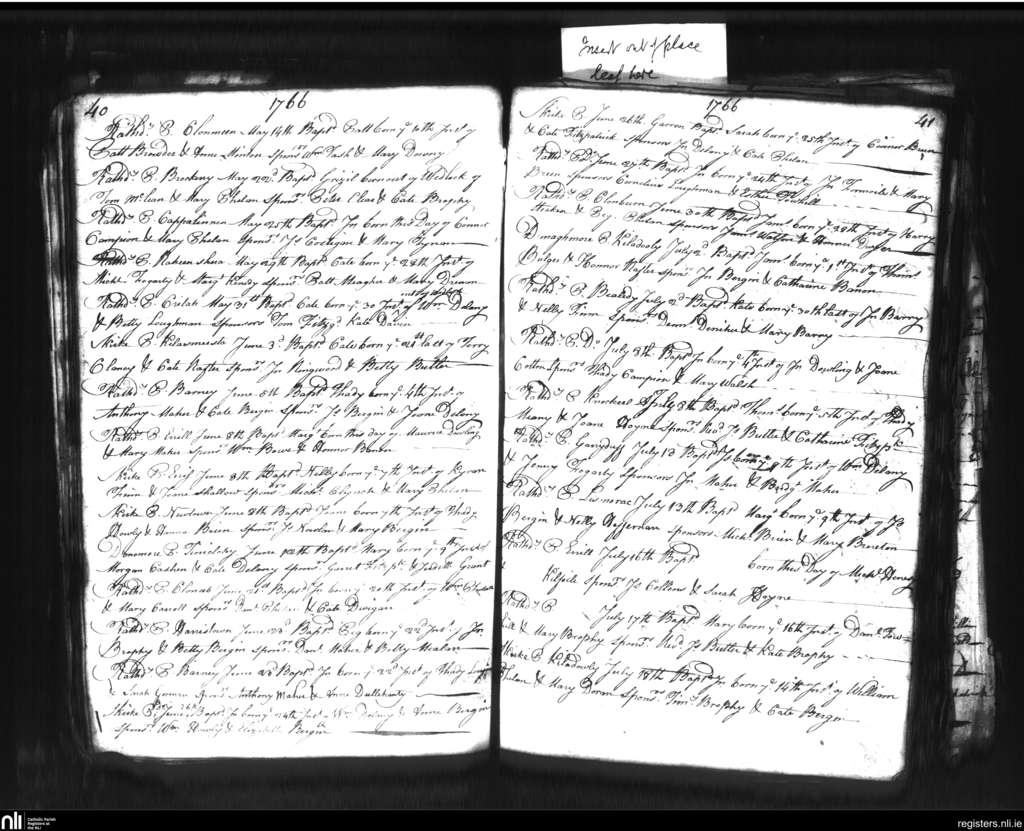 Rathdowney; County of Laois; Diocese of Ossory. Baptisms, May 1766 to July 1766