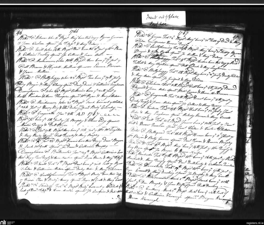 Rathdowney; County of Laois; Diocese of Ossory. Baptisms, Dec. 1766 to Mar. 1767