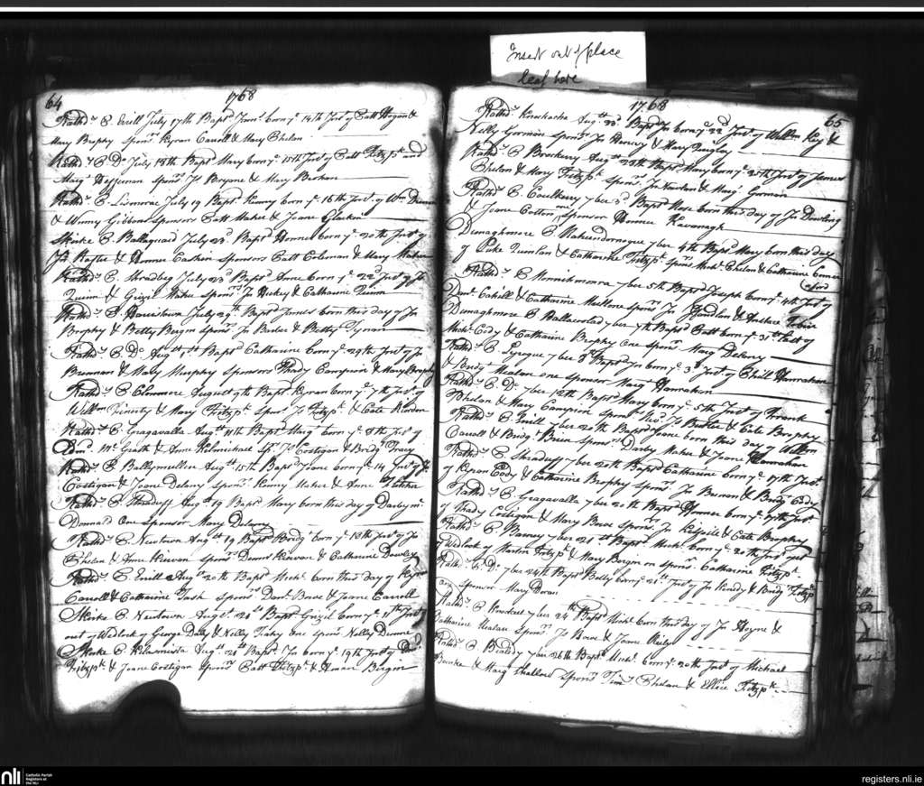 Rathdowney; County of Laois; Diocese of Ossory. Baptisms, July 1768 to Sep. 1768