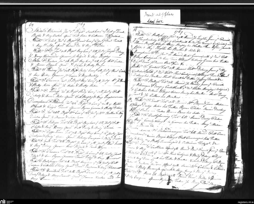 Rathdowney; County of Laois; Diocese of Ossory. Baptisms, Marriages, Jan. 1769 to Apr. 1769