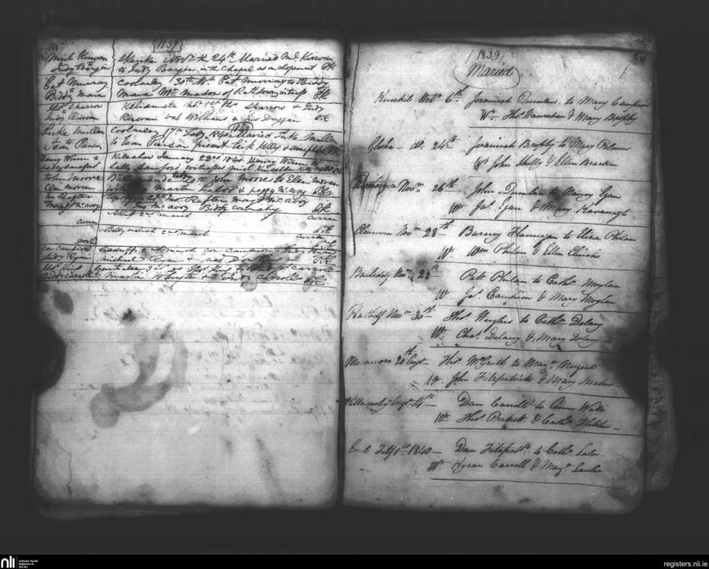 Rathdowney; County of Laois; Diocese of Ossory. Marriages, Oct. 1839 to Mar. 1840