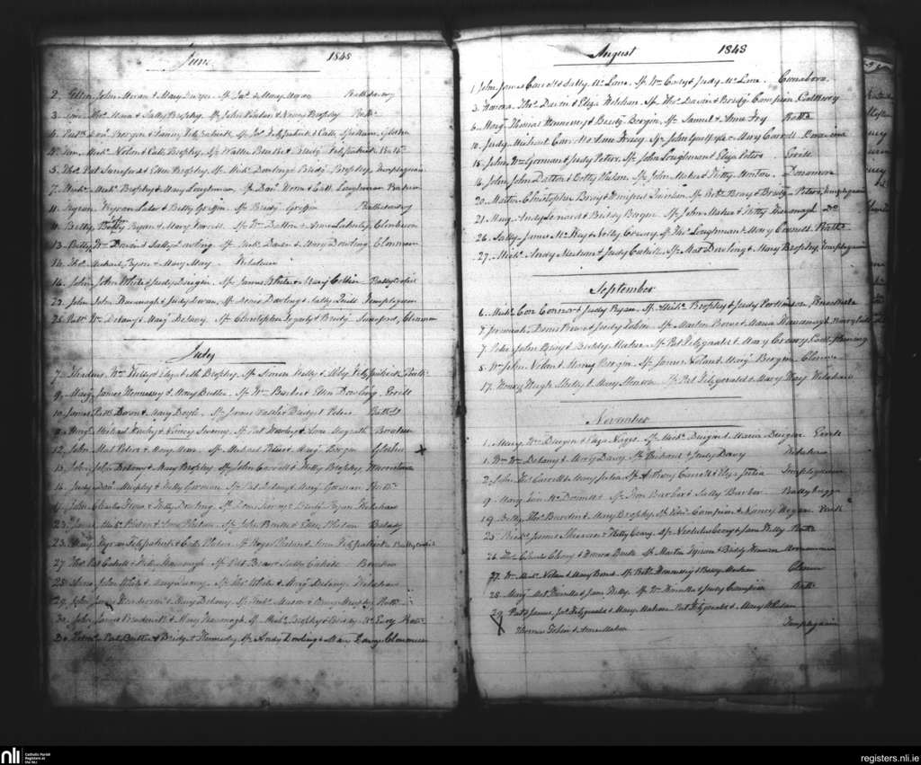Rathdowney; County of Laois; Diocese of Ossory. Baptisms, June 1848 to Nov. 1848