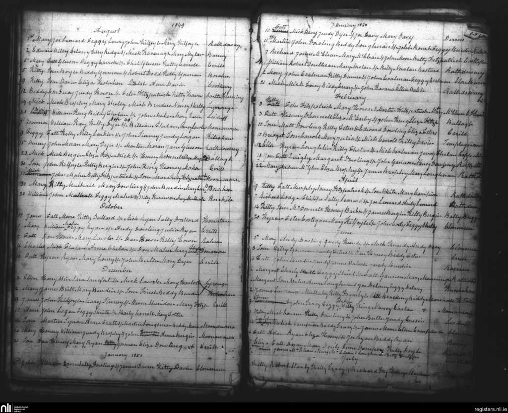 Rathdowney; County of Laois; Diocese of Ossory. Baptisms, Aug. 1849 to July 1850