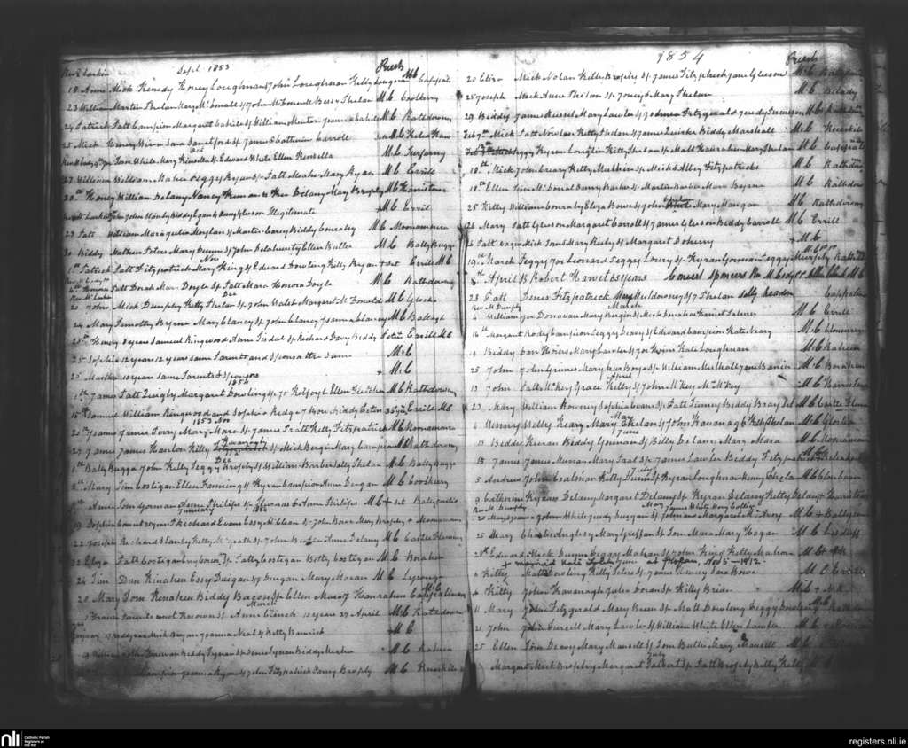 Rathdowney; County of Laois; Diocese of Ossory. Baptisms, Sep. 1853 to July 1854