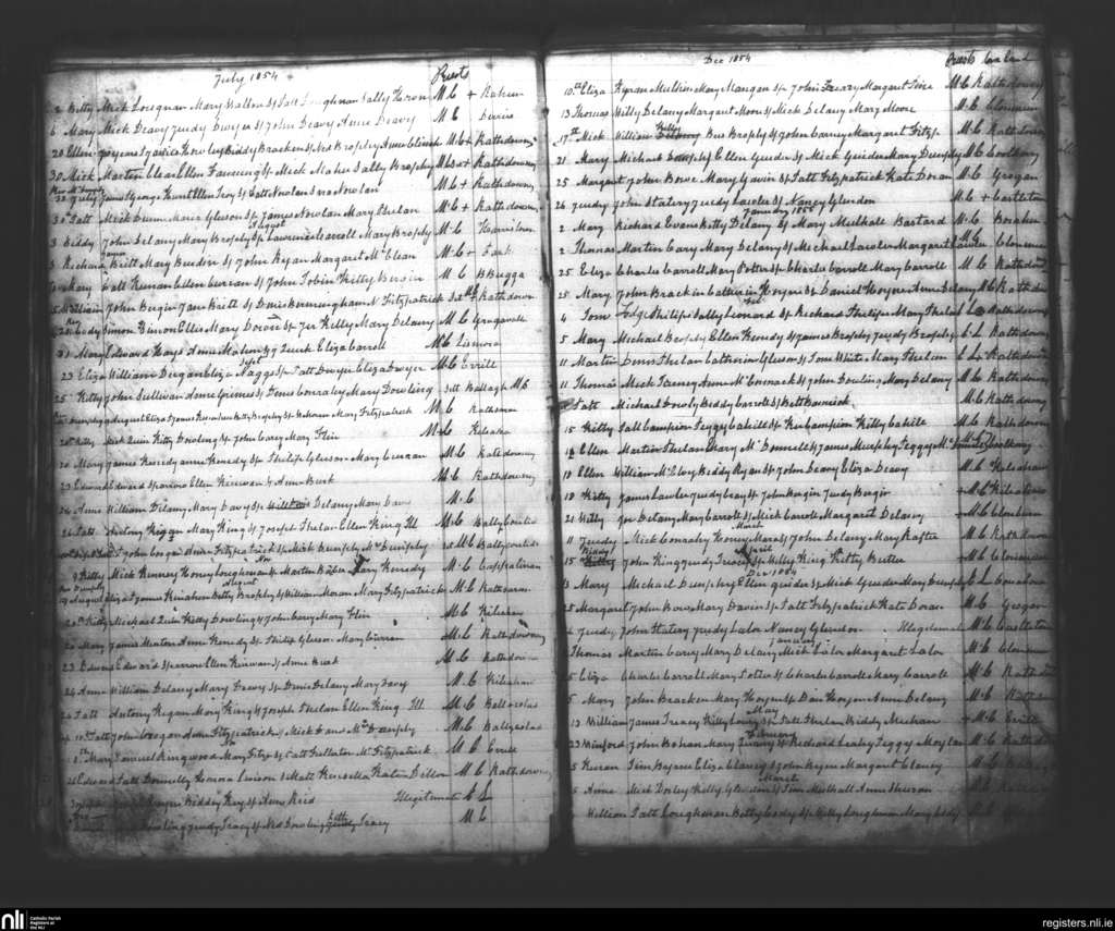 Rathdowney; County of Laois; Diocese of Ossory. Baptisms, July 1854 to May 1855