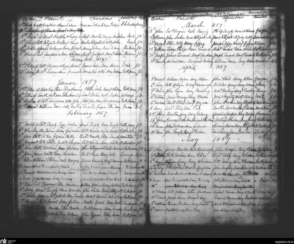 Rathdowney; County of Laois; Diocese of Ossory. Baptisms, Dec. 1856 to Nov. 1857