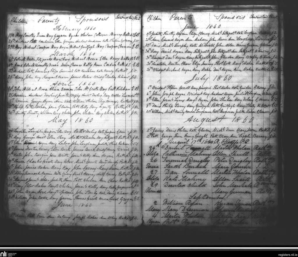 Rathdowney; County of Laois; Diocese of Ossory. Baptisms, Feb. 1860 to Sep. 1860