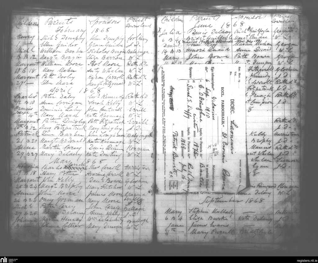 Rathdowney; County of Laois; Diocese of Ossory. Marriages, Sep. 1910